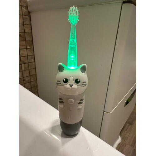 суперская щётка, очень тактильная, приятная, в комплекте батарейка и запасная щётка. купила по рекомендации стоматолога для ребенка 3,5г чистить по вечерам.
